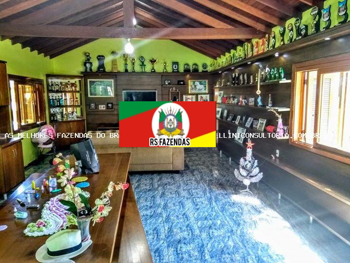 CASA DE PATRÃO COM 5 DORMITÓRIOS, (2 SUÍTES, 1 CLOSET, HIDRO), BANHEIRO SOCIAL, SALA DE ESTAR COM BANHEIRO SOCIAL, LIVING AMPLO, JANTAR, SALA DE JOGOS COM BANHEIRO, ALPENDRE, TODAS ABERTURAS EM MADEIRAS NOBRES.